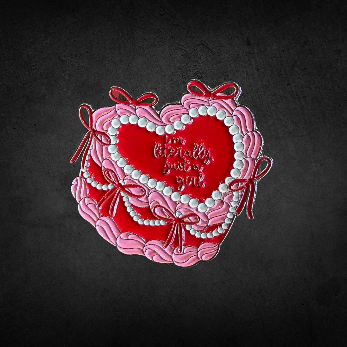 Soft enamel pin with glossy pink and vibrant pastel detailing